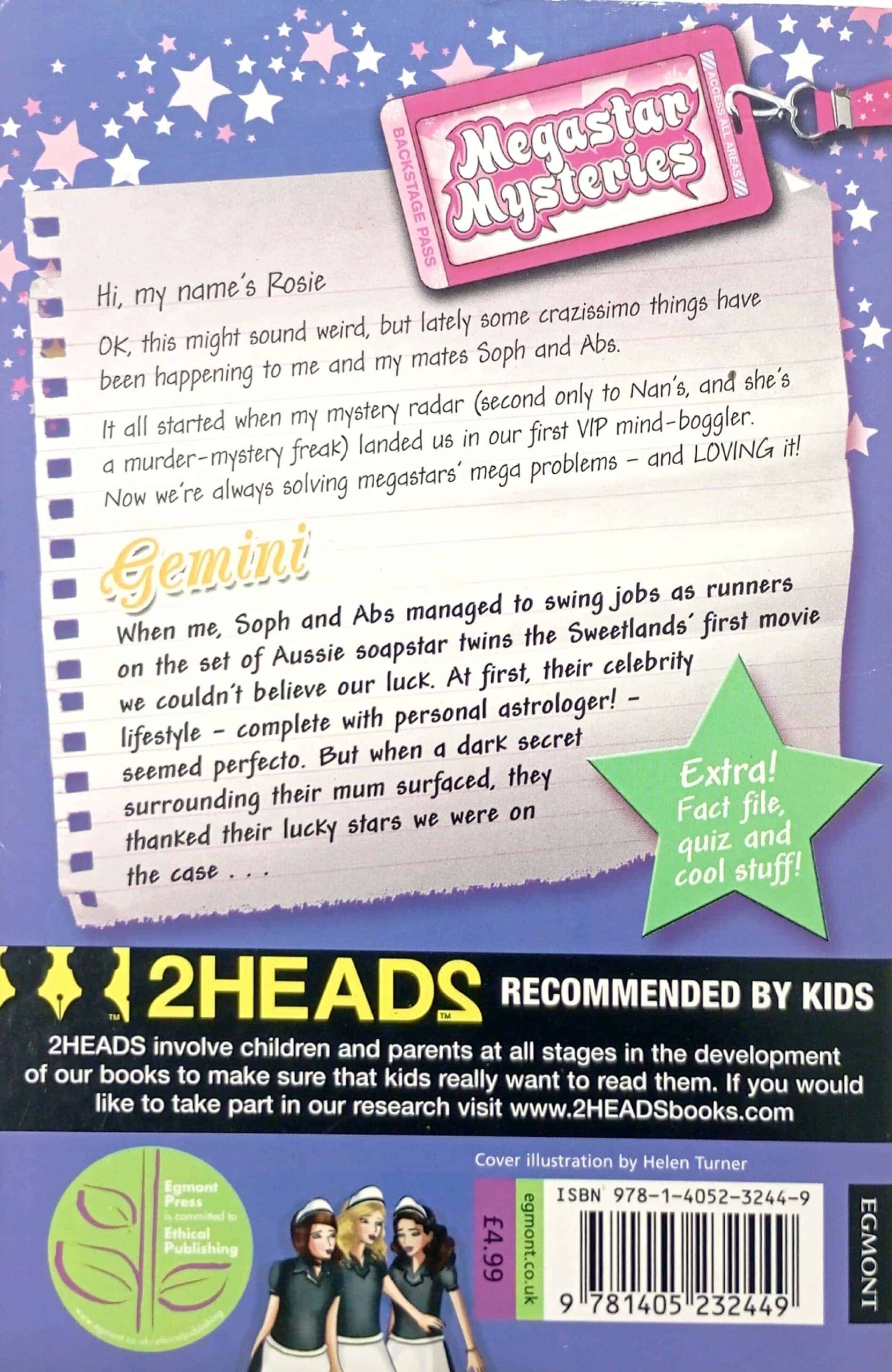Rosie and her best mates Soph and Abs are three regular girls. They like regular-girl things; they eat regular-girl food and wear regular-girl gear. In book one in the “Megastar Mysteries” series, their regular-girl lives are turned upside down when Rosie gets caught up with a desperate plea for help from a mega pop star, Mirage Mullins, who’s doing a signing in their local record shop. The girls don’t know quite what to do, but they’ll go to any lengths to help save the career of their favourite pop star. The trio of friends must find a way to solve the murky mystery surrounding Mirage’s gorgeous stepbrother, Joe, and they resolve to get to the bottom of the strange behaviour of Mirage’s manager, Simone Jones. Over the course of the “Megastar Mysteries” series, Rosie and her friends unintentionally stumble upon other celebrity mysteries that need solving and, much to their delight, are always finding themselves in demand by mega stars with mega problems. Readers will fall in love with Maff, the troubled star of rising pop band Fusion, actress twins Paige and Shelby, teen model Angel, soap opera star Cassie St Claire and the enigmatic new chart sensation “Songbird”.