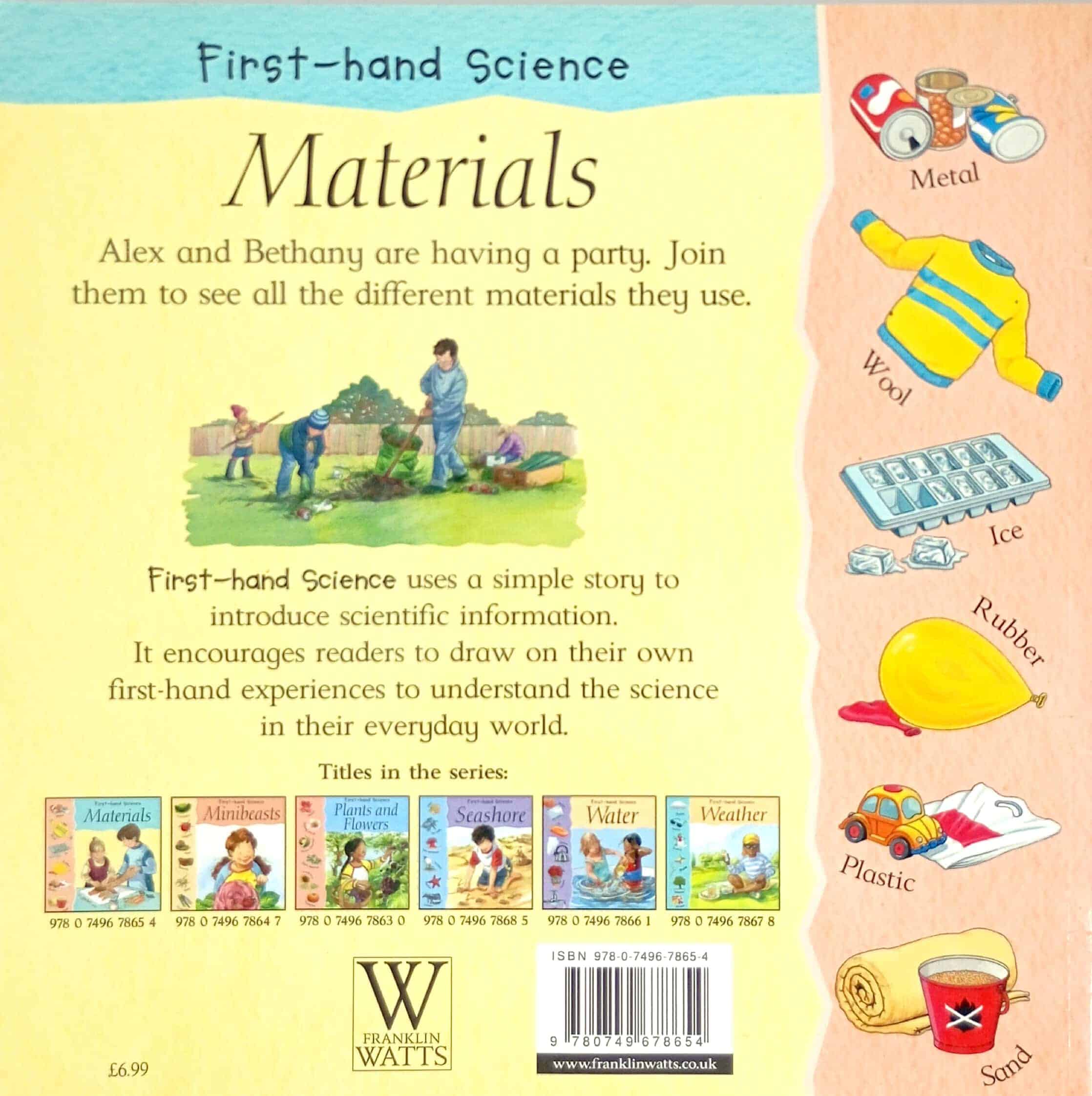 The book Materials by Lynn Huggins-Cooper is part of the “First-Hand Science” series. It explores different materials through the story of a family preparing for a party. The book introduces young readers to the characteristics, states, and uses of various materials, along with an emphasis on recycling. It’s a practical and educational resource for children, helping them understand the science in everyday objects and actions.